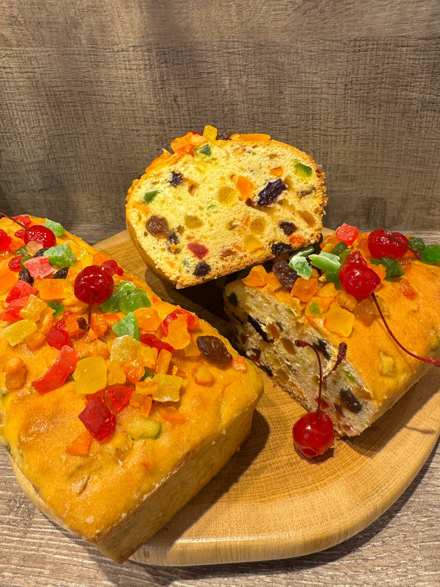 Keks Świąteczny na maślanym cieście z włoskiej mąki typ 00, pełen bakalii premium – rodzynek, orzechów i skórki pomarańczowej, z nutą brązowego rumu i delikatną pomarańczową polewą. Wilgotny, aromatyczny, idealny na świąteczny stół i na prezent.