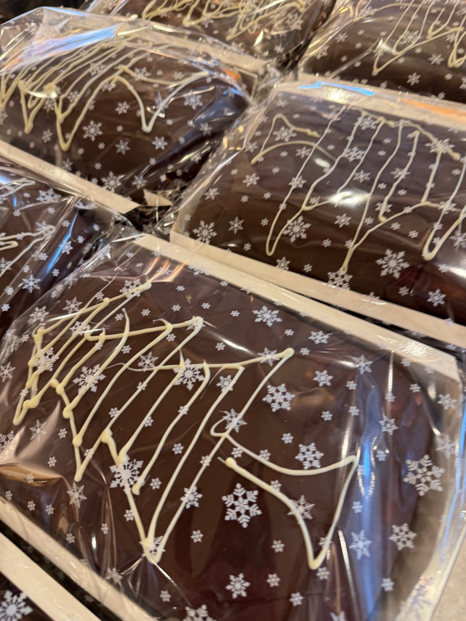 Piernik dojrzewający 20 dni, na maśle, miodzie i jajkach, z domowymi powidłami śliwkowymi i grubą warstwą najwyższej jakości belgijskiej czekolady. Miękki, wilgotny, intensywnie korzenny, pełen naturalnych składników – limitowana edycja, tylko na zapisy.