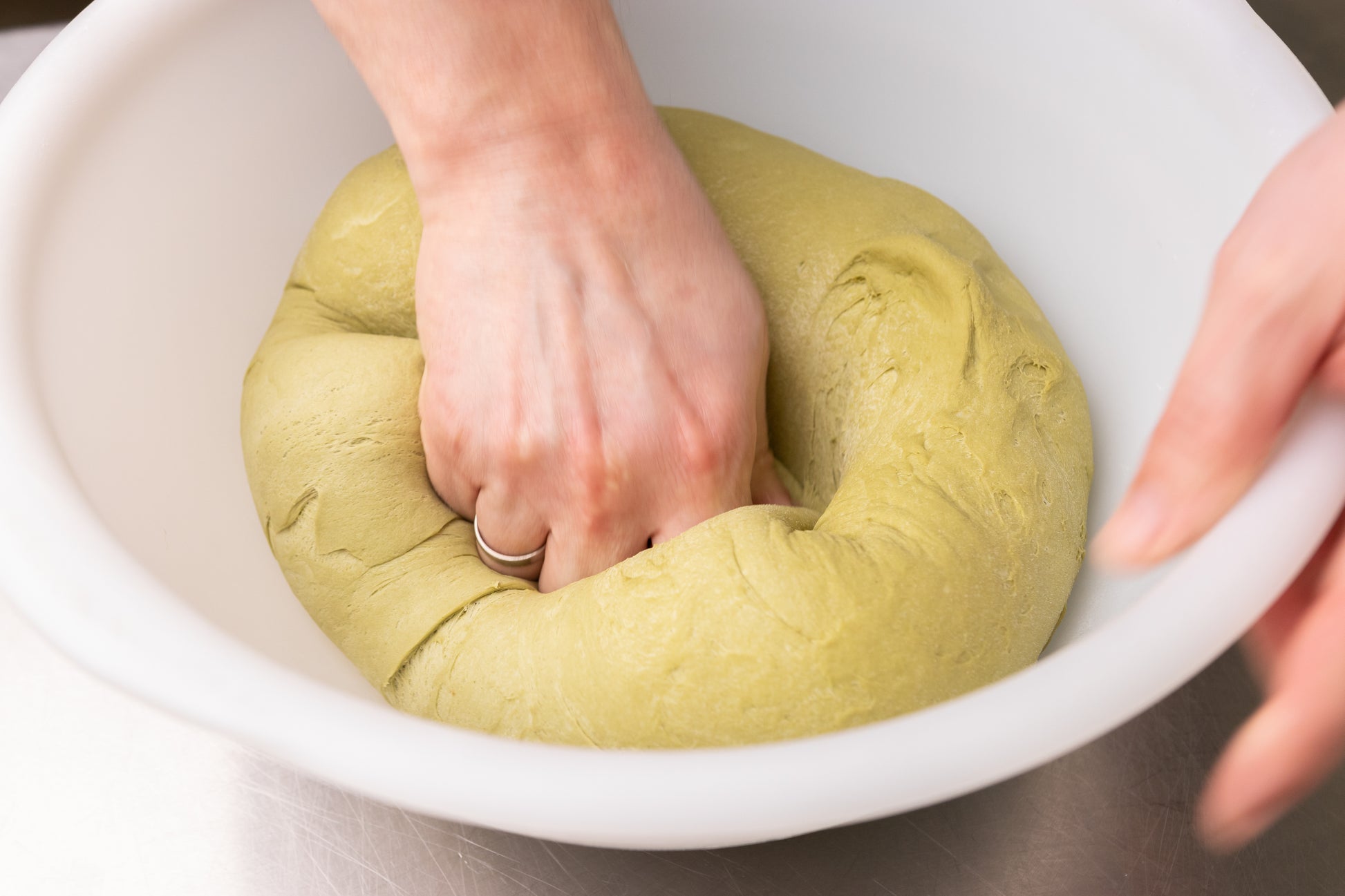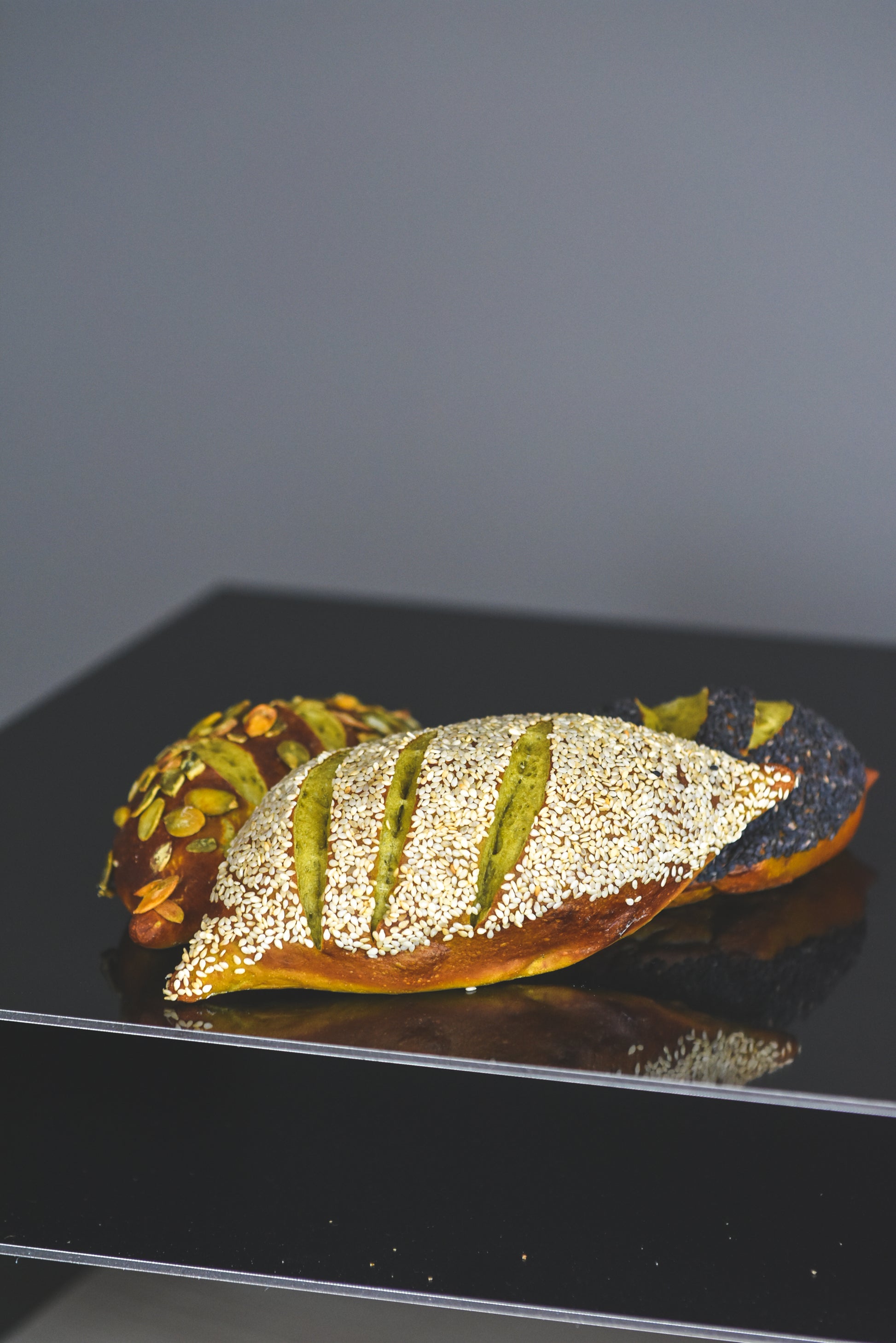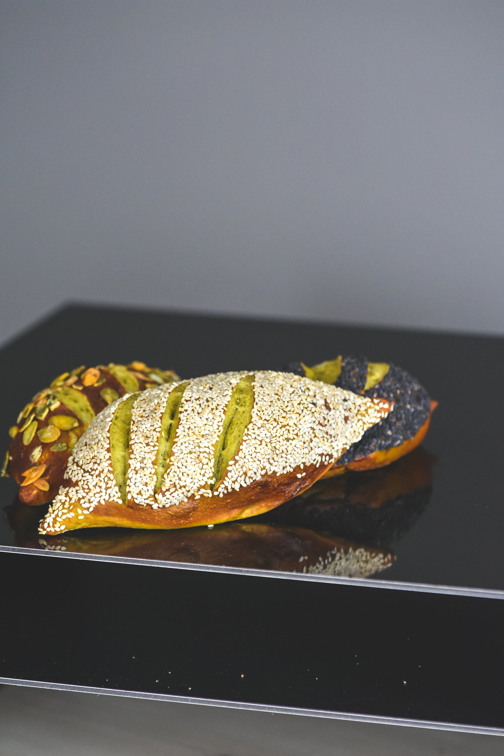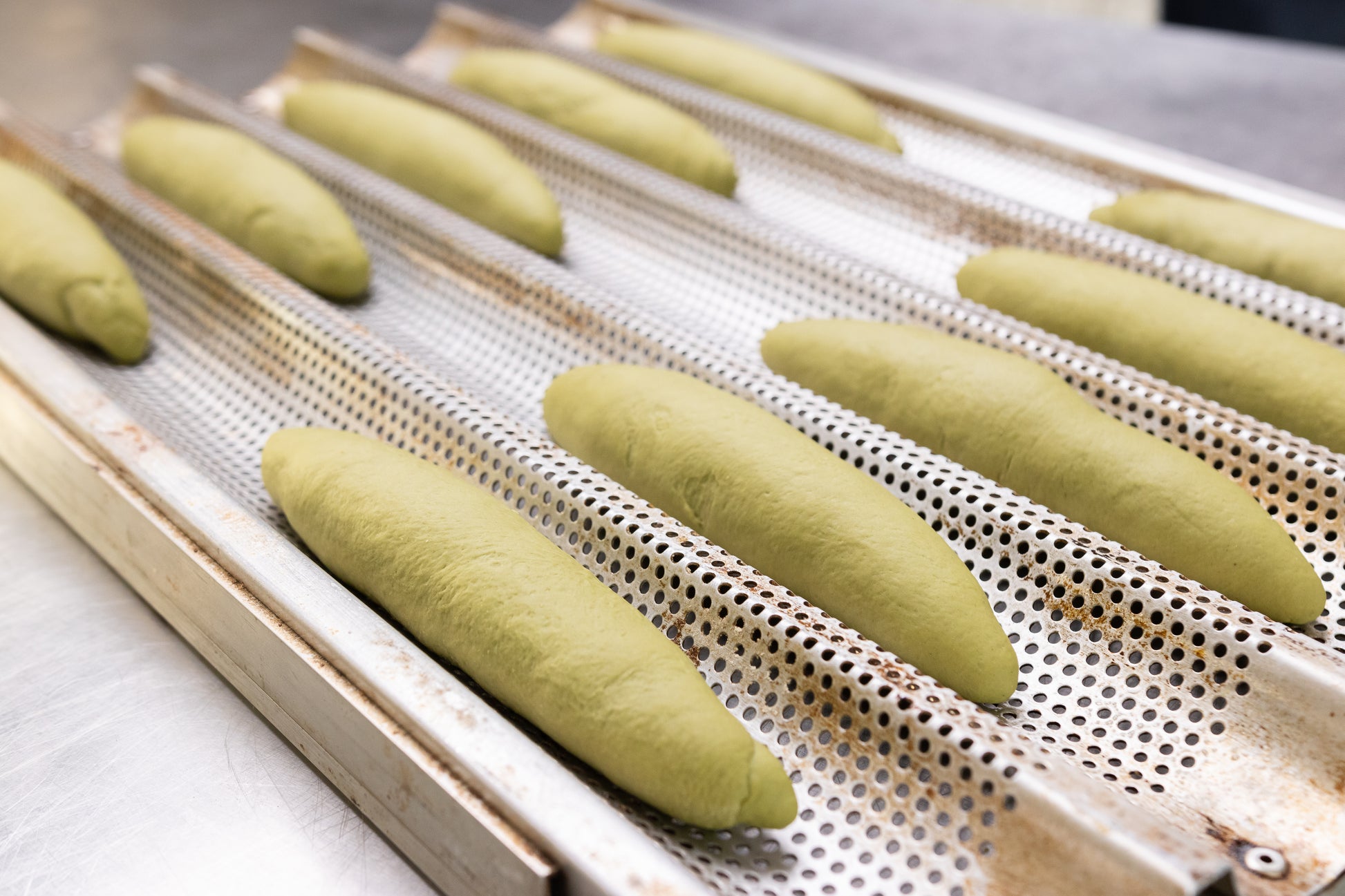 Rzemieślnicza bułka inspirowana japońską precyzją, prowadzona na drożdżach i kąpana w kąpieli sodowej przed wypiekiem. Dzięki temu zyskuje brązową, lekko błyszczącą skórkę o charakterystycznym paluszkowym aromacie. Dodatek matchy z pierwszego zbioru nadaje jej subtelnie roślinny smak i funkcjonalny charakter.